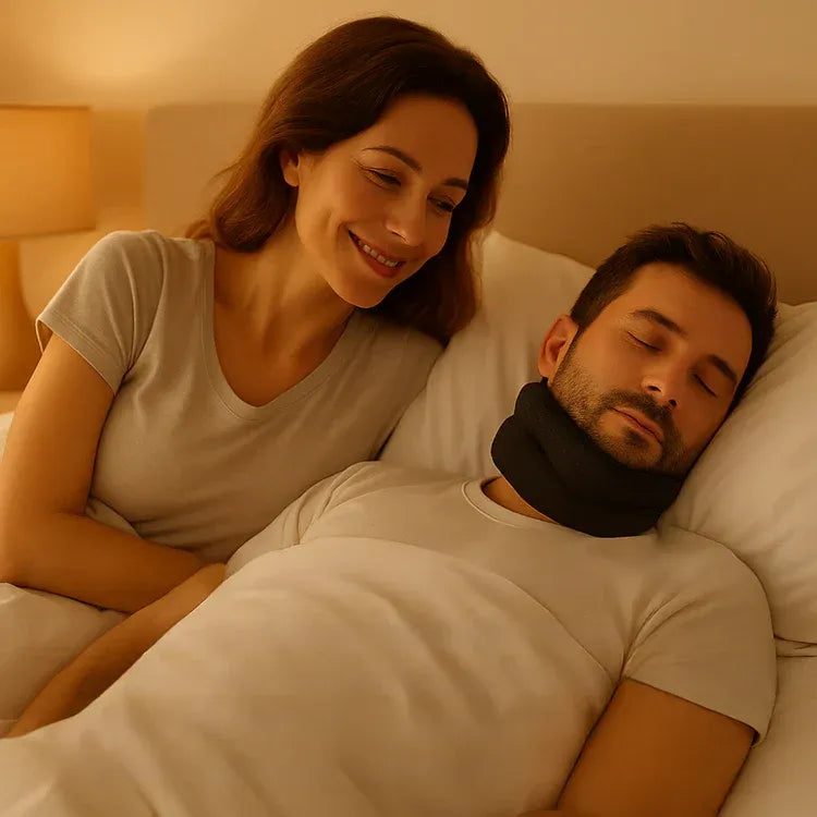 <<Super easy to use and surprisingly comfy. I wake up without that sore, dry throat I used to get. My wife says I finally stopped sounding like a lawnmower at night.>>